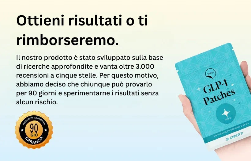 Il cerotto Mokio™ GLP-1 supporta il controllo dell’appetito, un’energia più stabile e una sensazione di leggerezza in poche settimane.